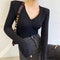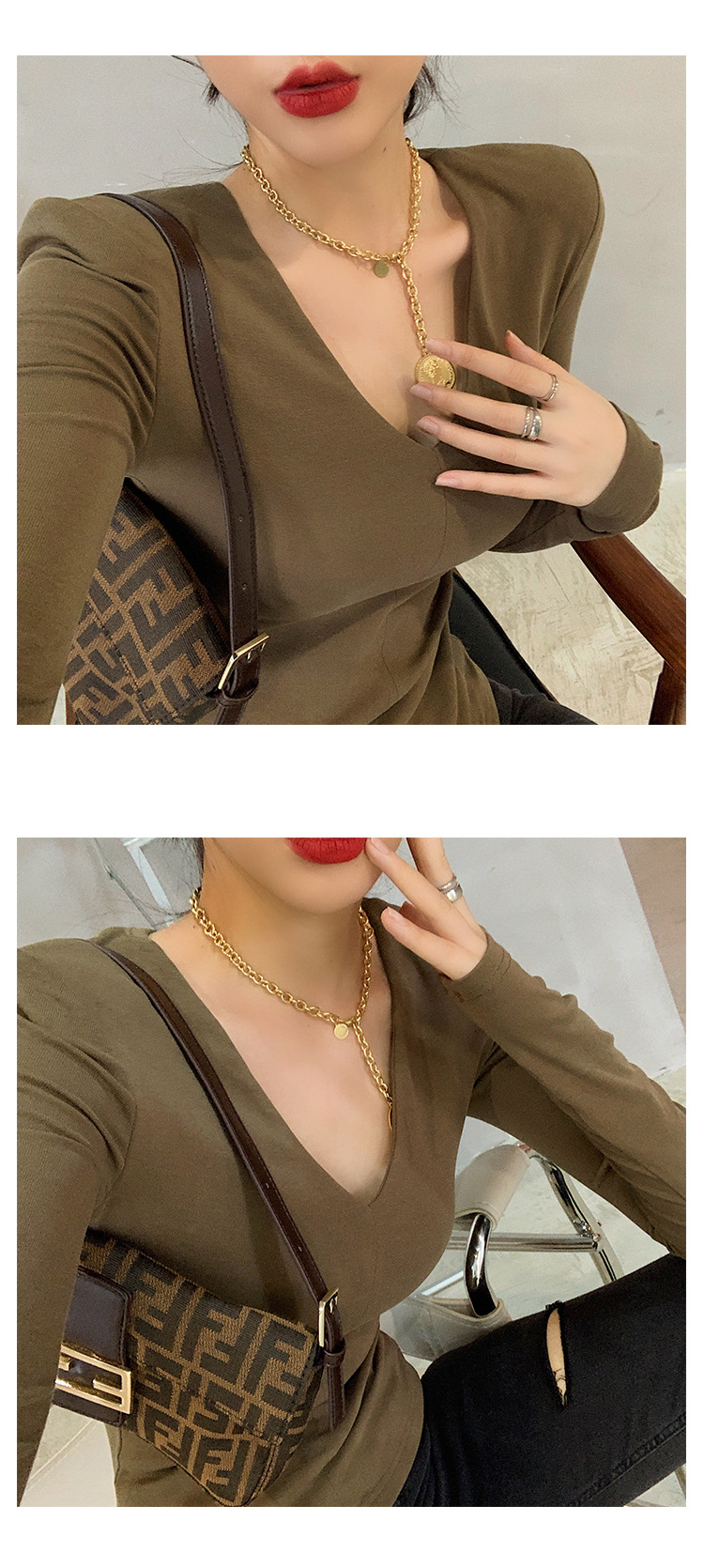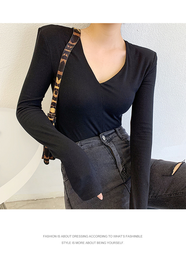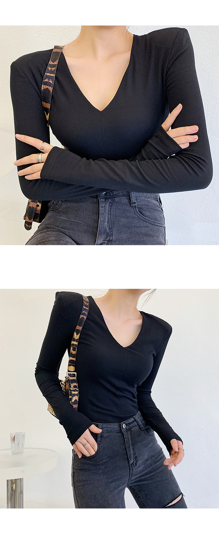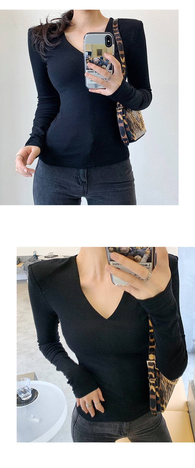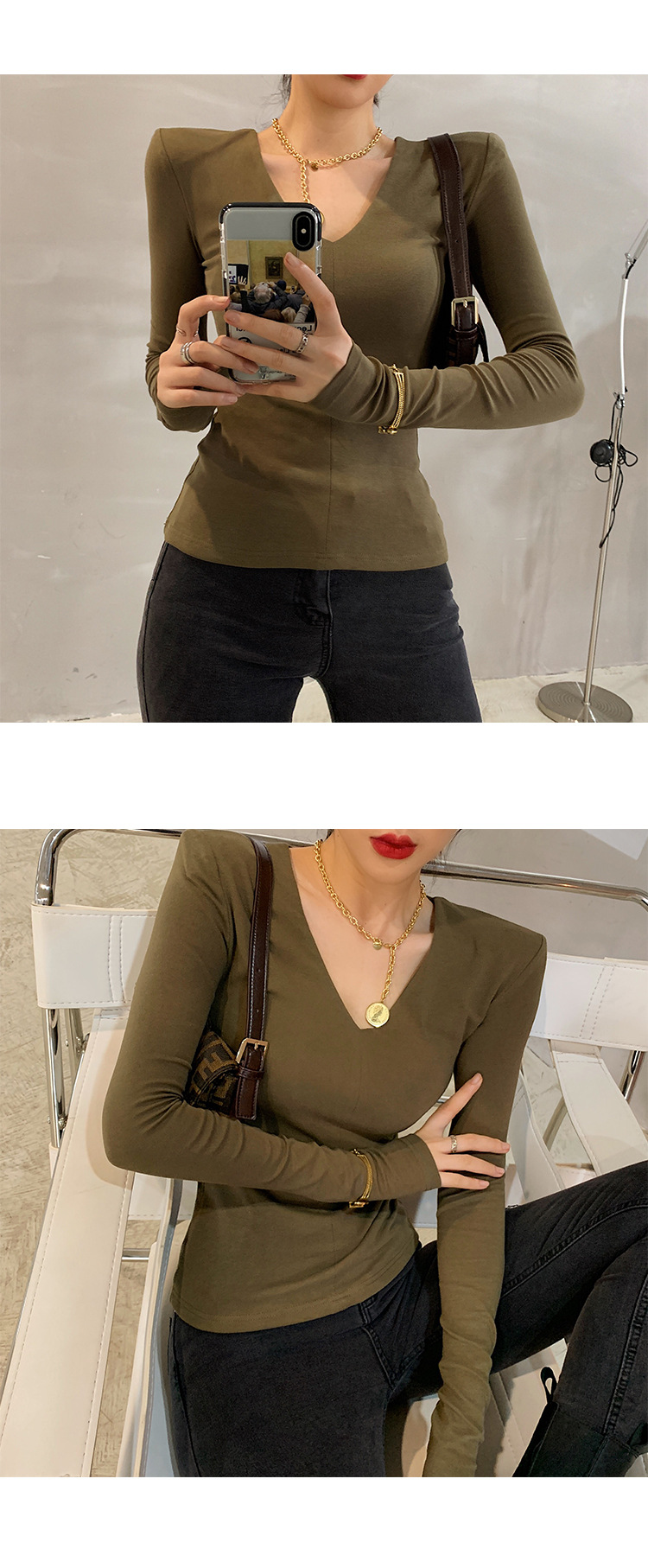 Crafted from sumptuous cotton, this classic long-sleeved top is an effortlessly sophisticated choice. The streamlined V-neck design is given modern slant with subtle collage/splicing and comes in a selection of stylish shades: black, green and gray. Sizes S, M, L and XL available. Fit is perfect for all body types with lengths of 50cm-65cm.