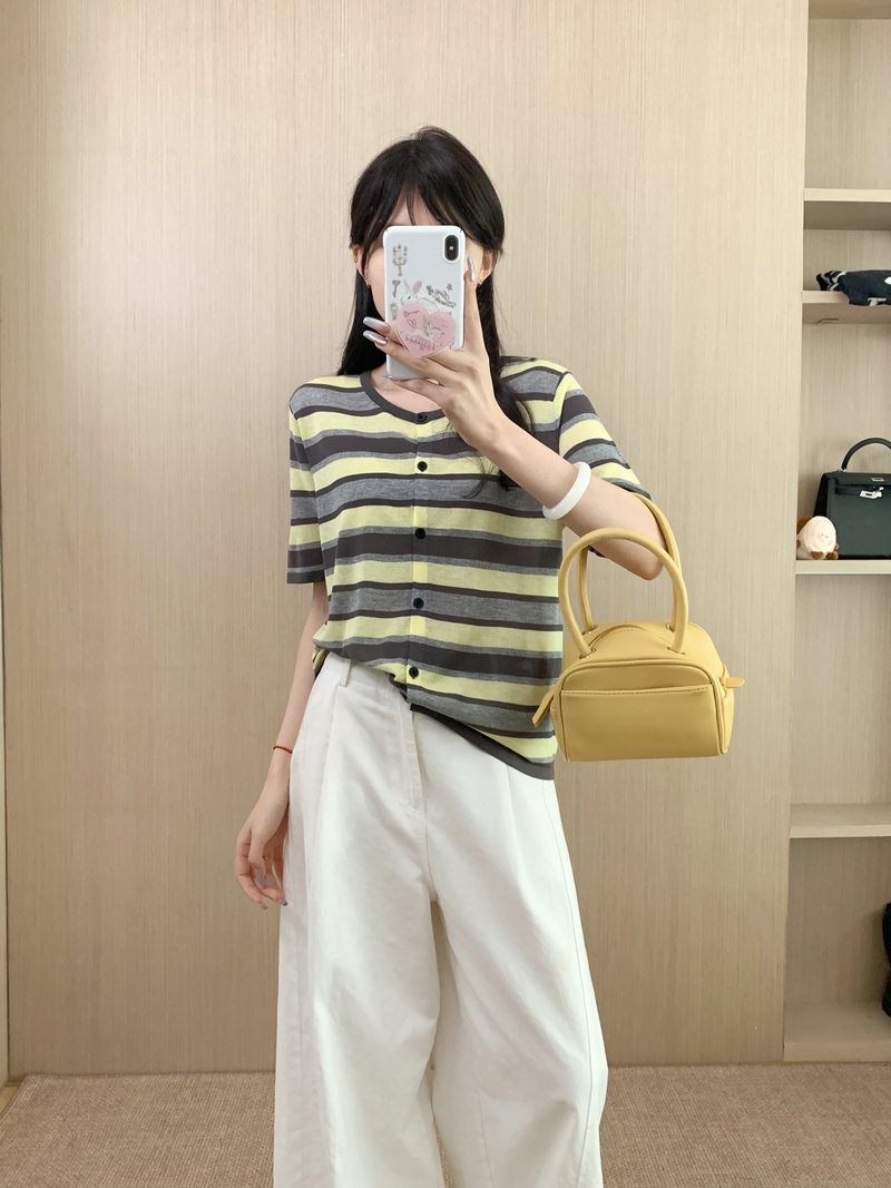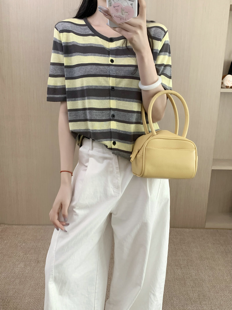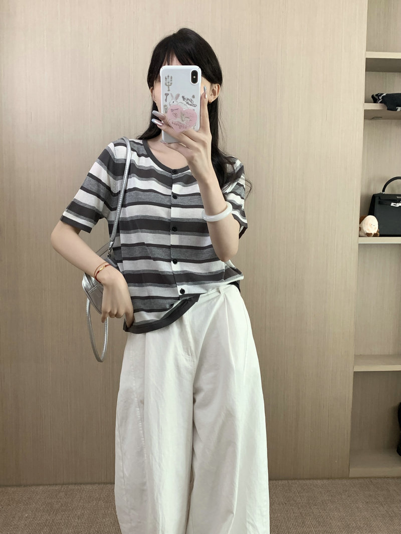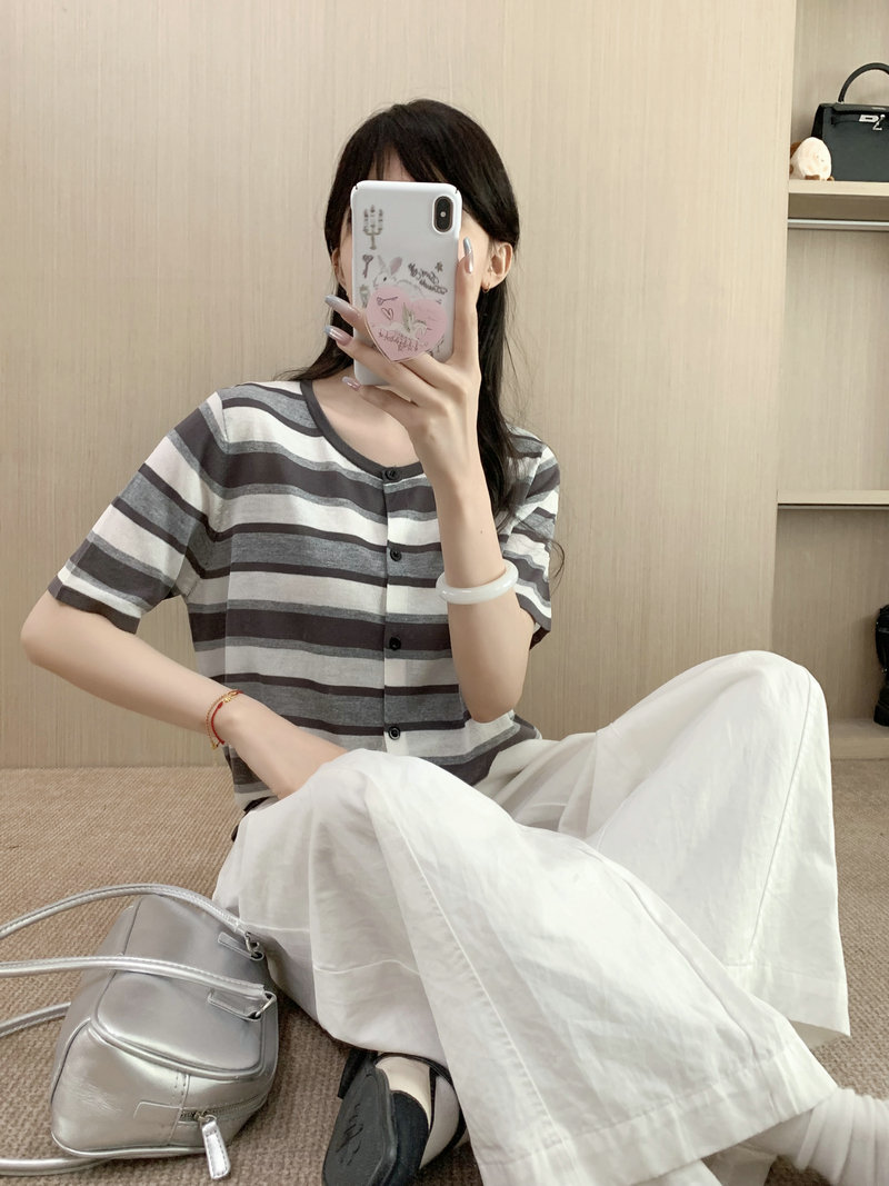 Single Breasted Round Neck Short Sleeve Knit Top