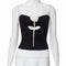 The style of this top is described as “Sweet and Spicy,” which perfectly captures its dual nature. The sweetness comes from the delicate three-dimensional flower decorations that add a feminine touch, while the spicy element is introduced through the bold black color and the sleek, slim fit. This combination makes the top suitable for a variety of settings, from casual to more formal occasions.