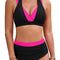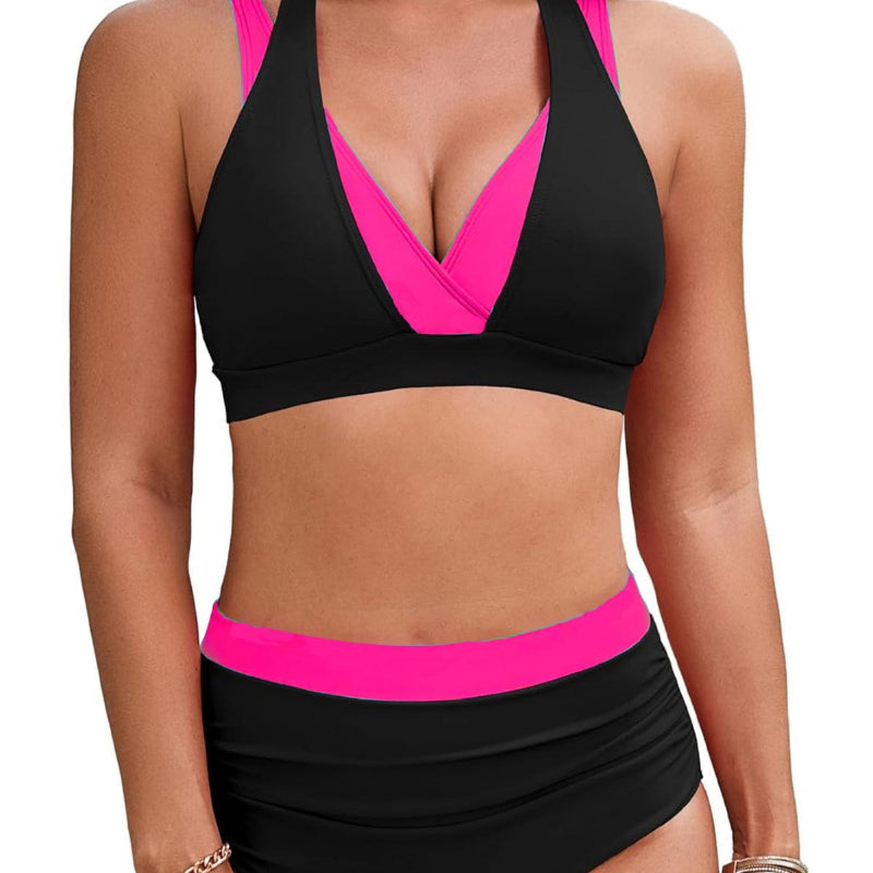 Turn heads with this daring halter two-piece swimsuit featuring a flattering high waist for bold, confident style.
