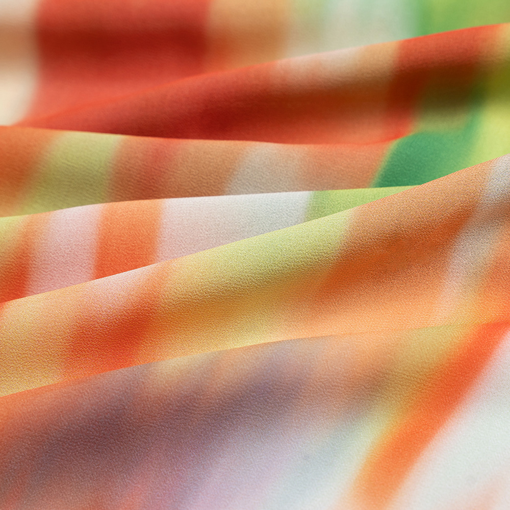To perfectly complement the fluid design and vibrant gradient of this dress, keep your accessories relaxed and effortlessly chic: