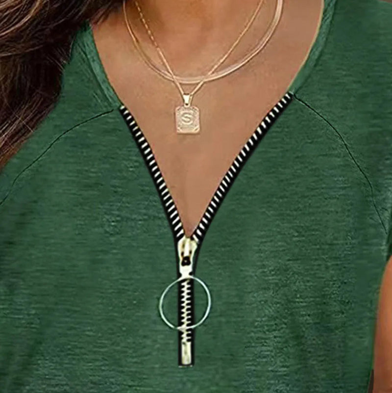 Elevate your casual wardrobe with our Full Size Half Zip Cap Sleeve T-Shirt, a refined fusion of comfort and contemporary design. The distinctive half-zip detail offers versatile styling options, while the cap sleeves create a flattering silhouette. Crafted from premium fabric that drapes elegantly on the body, this sophisticated essential transitions effortlessly from daytime engagements to evening occasions. The thoughtful proportions ensure a full-size fit that complements various body types with understated elegance.