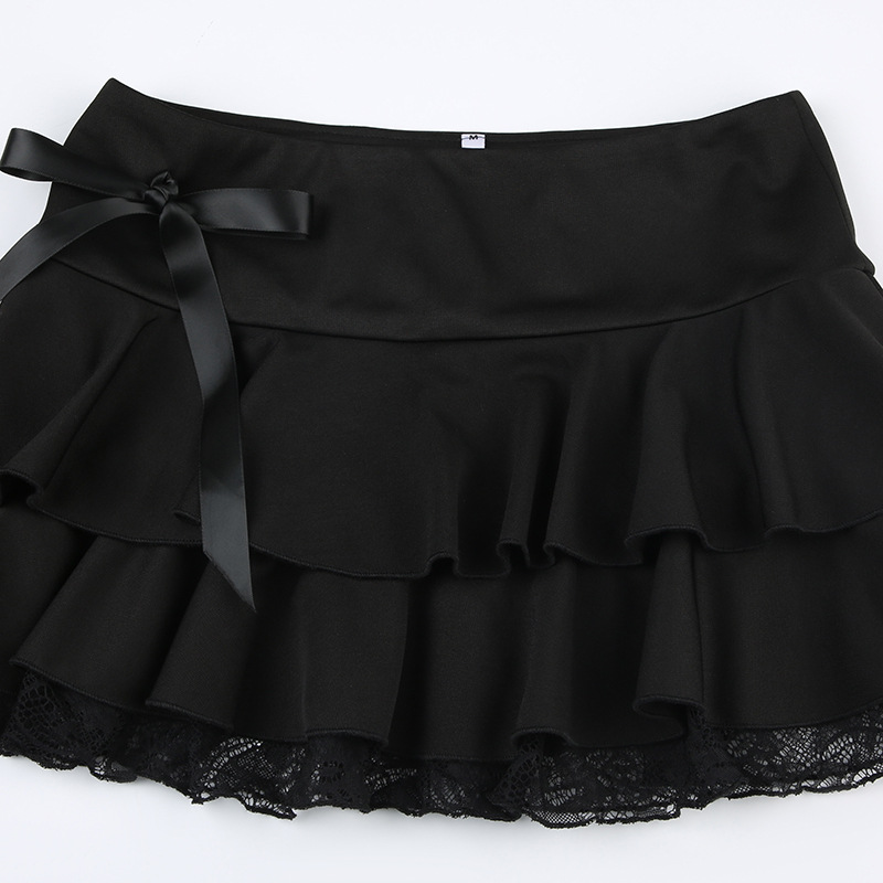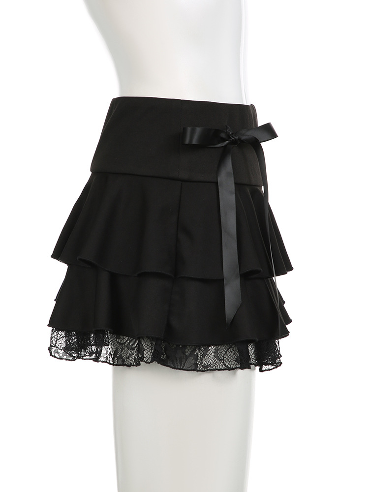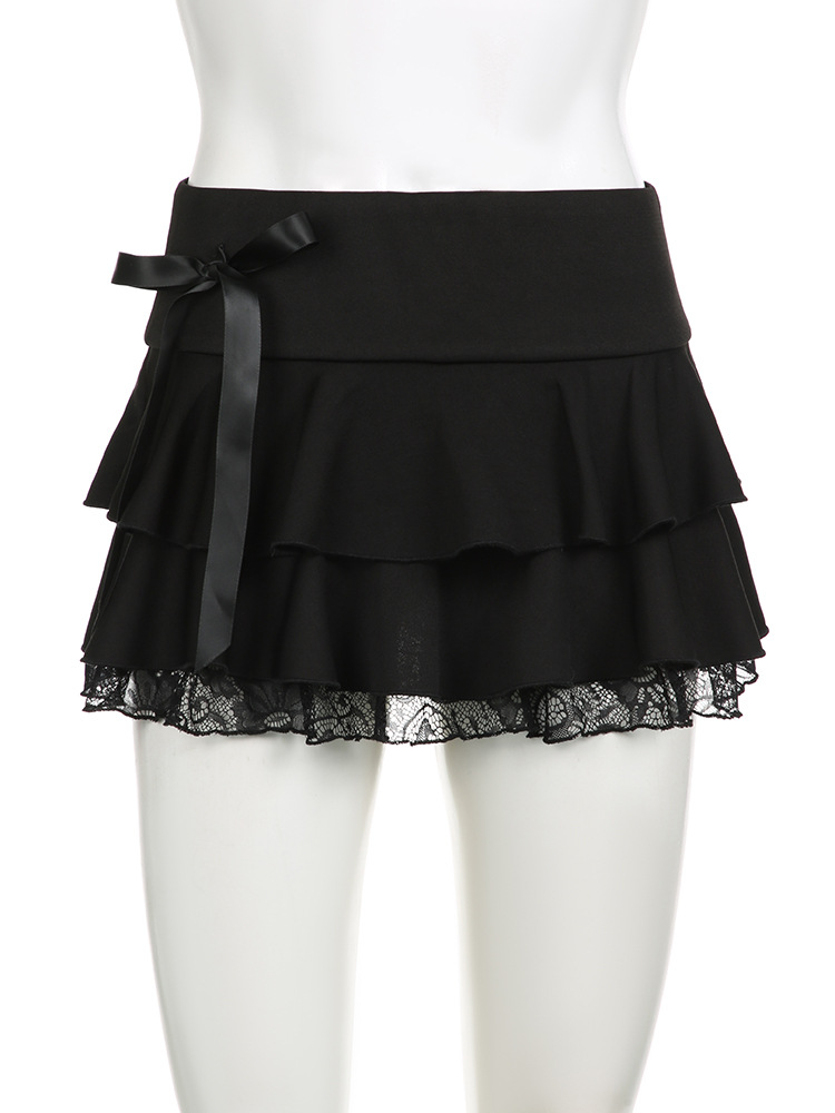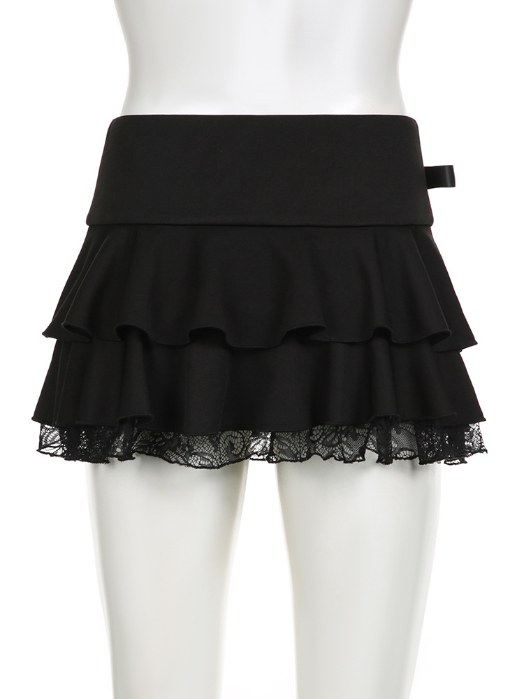 This daring mini skirt features lace detailing and a bubble design for a bold, playful look that stands out.
