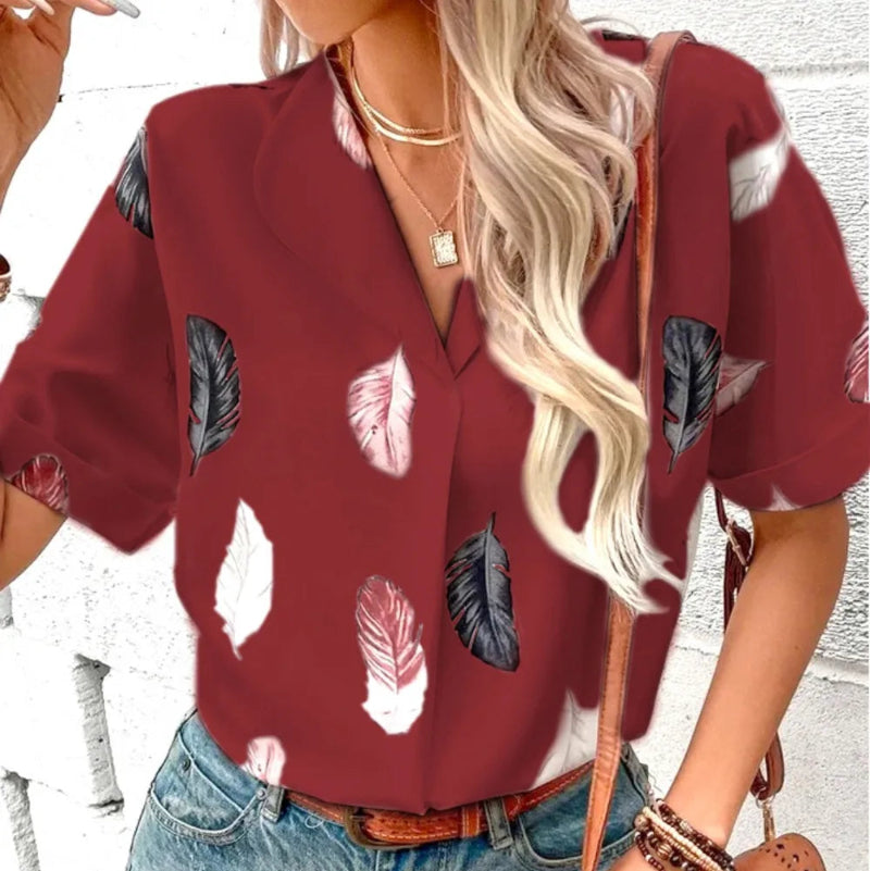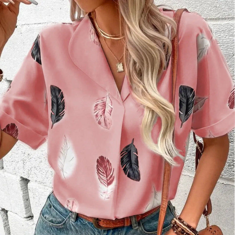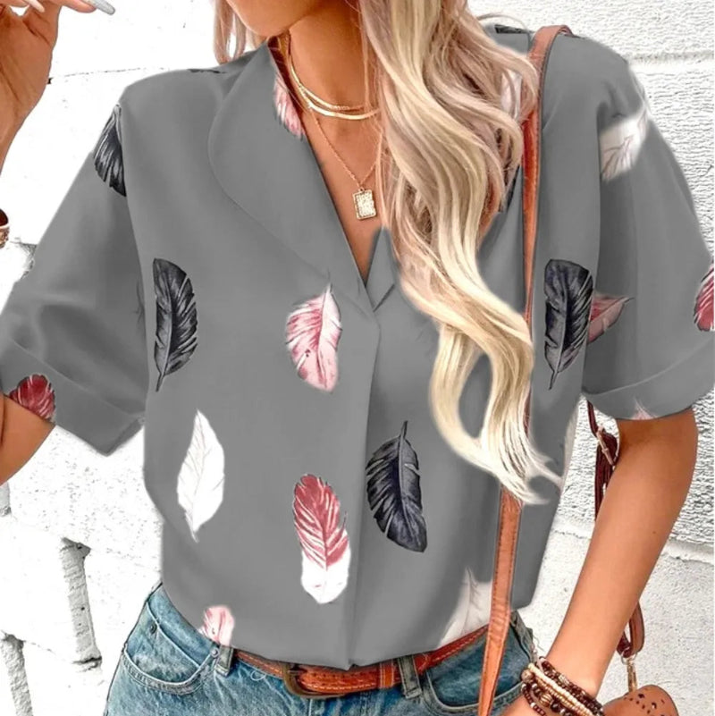 Elevate your wardrobe with our exquisite Printed Collared Neck Short Sleeve Blouse. Meticulously crafted with attention to detail, this piece is the definition of a sophisticated staple, perfect for the discerning taste.