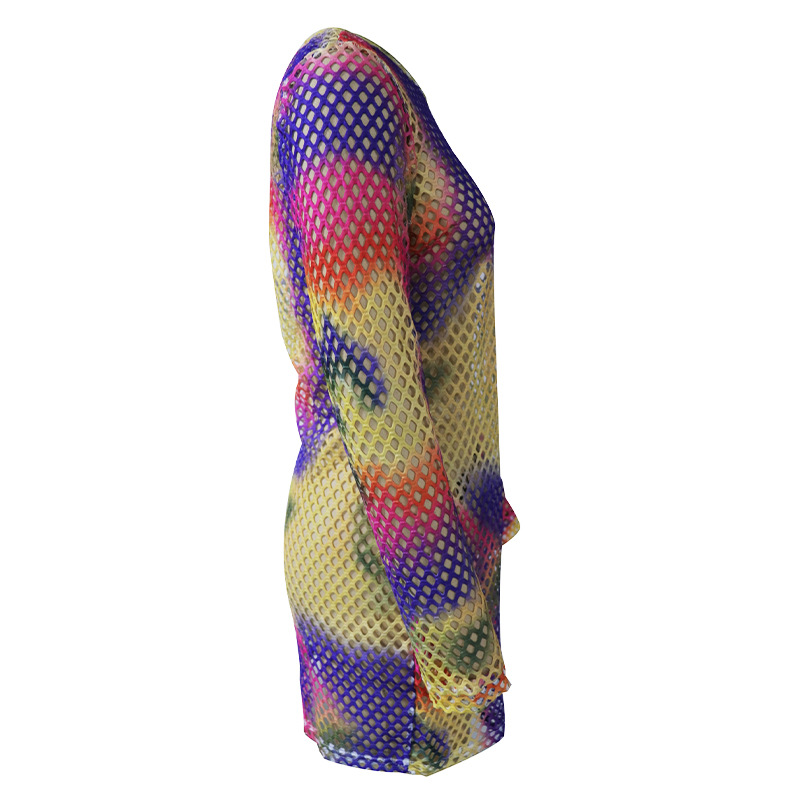 Step out in style with this masterpiece of a dress. Crafted from premium quality polyester fiber, this Printed Fishnet Hip Mini Dress is designed to enhance your curves and make a statement. With its unique print and flattering fit, this dress will ensure that all eyes are on you. Create a lasting impression with the sophisticated and exclusive style of this ultimate fashion piece.