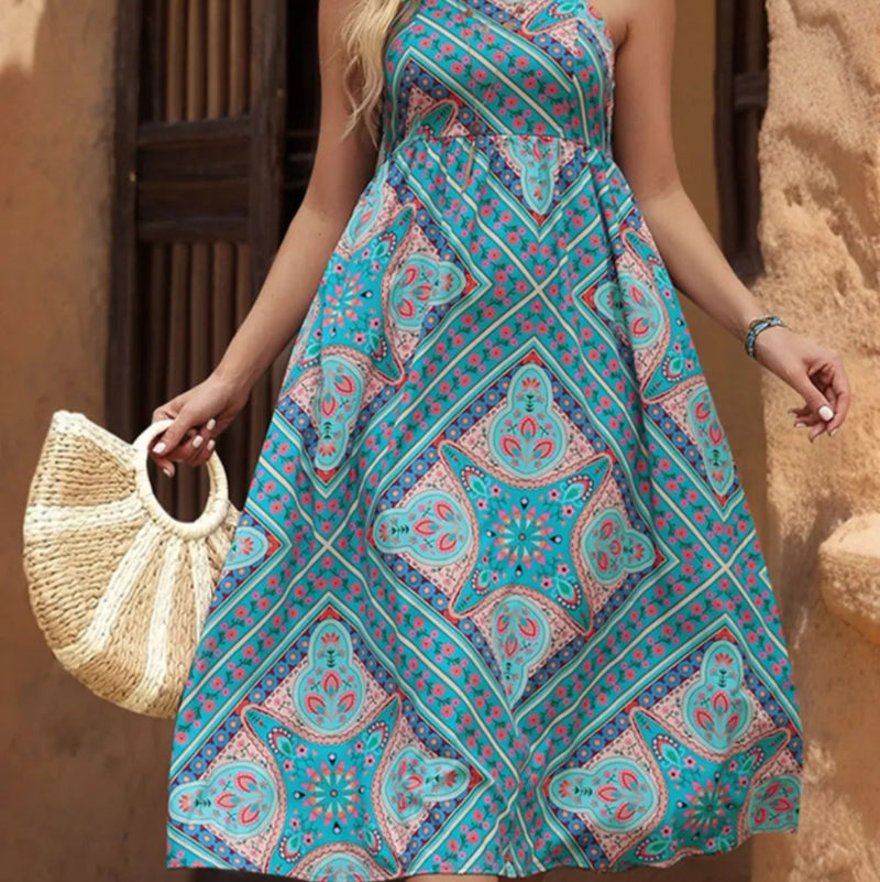 Elevate your wardrobe with our exquisite Printed Spaghetti Strap Midi Dress. This refined silhouette gracefully contours the body while the delicate spaghetti straps offer a touch of feminine allure. The artful print adds visual interest to this versatile piece, making it suitable for both daytime soirées and evening engagements. Crafted with meticulous attention to detail, this midi-length dress embodies effortless sophistication for the discerning woman.