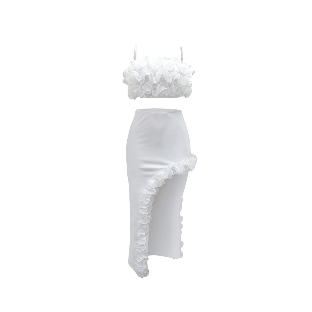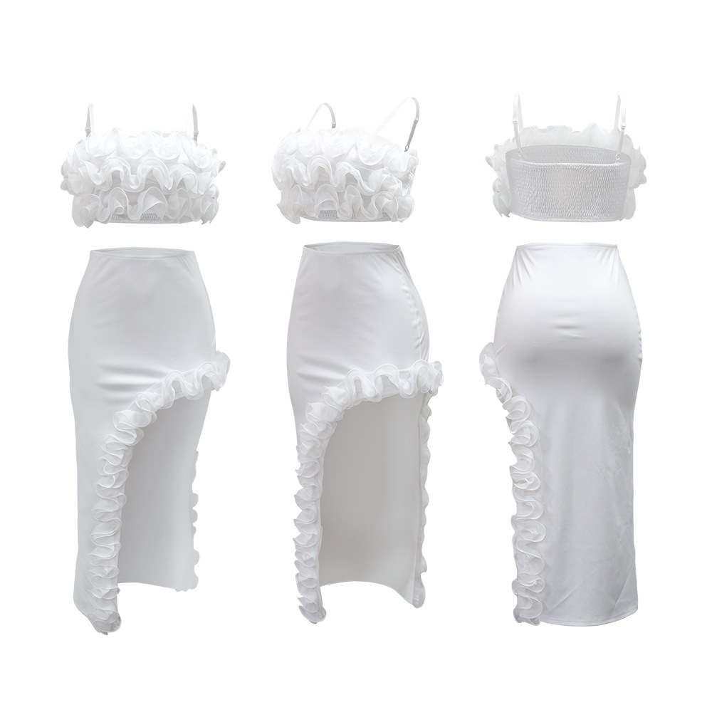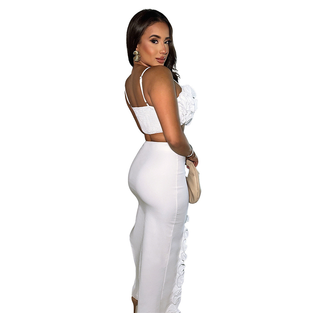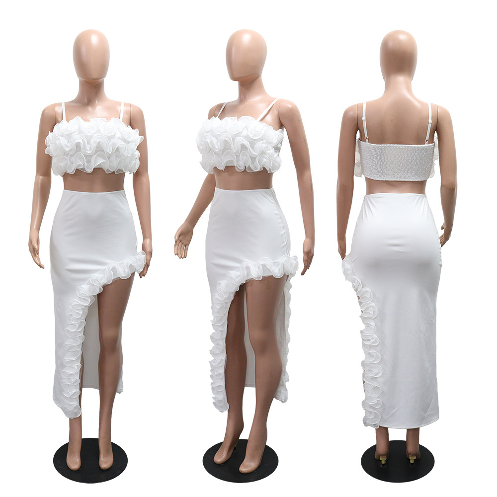 Step out in comfort and style with this versatile Ruffle Hem Skirt with Top Two Piece Set. Featuring a chic sleeveless top and a flowing long skirt with a delicate ruffle hem, this solid-color set is made from a comfortable blend of polyester and spandex. Ideal for casual occasions.