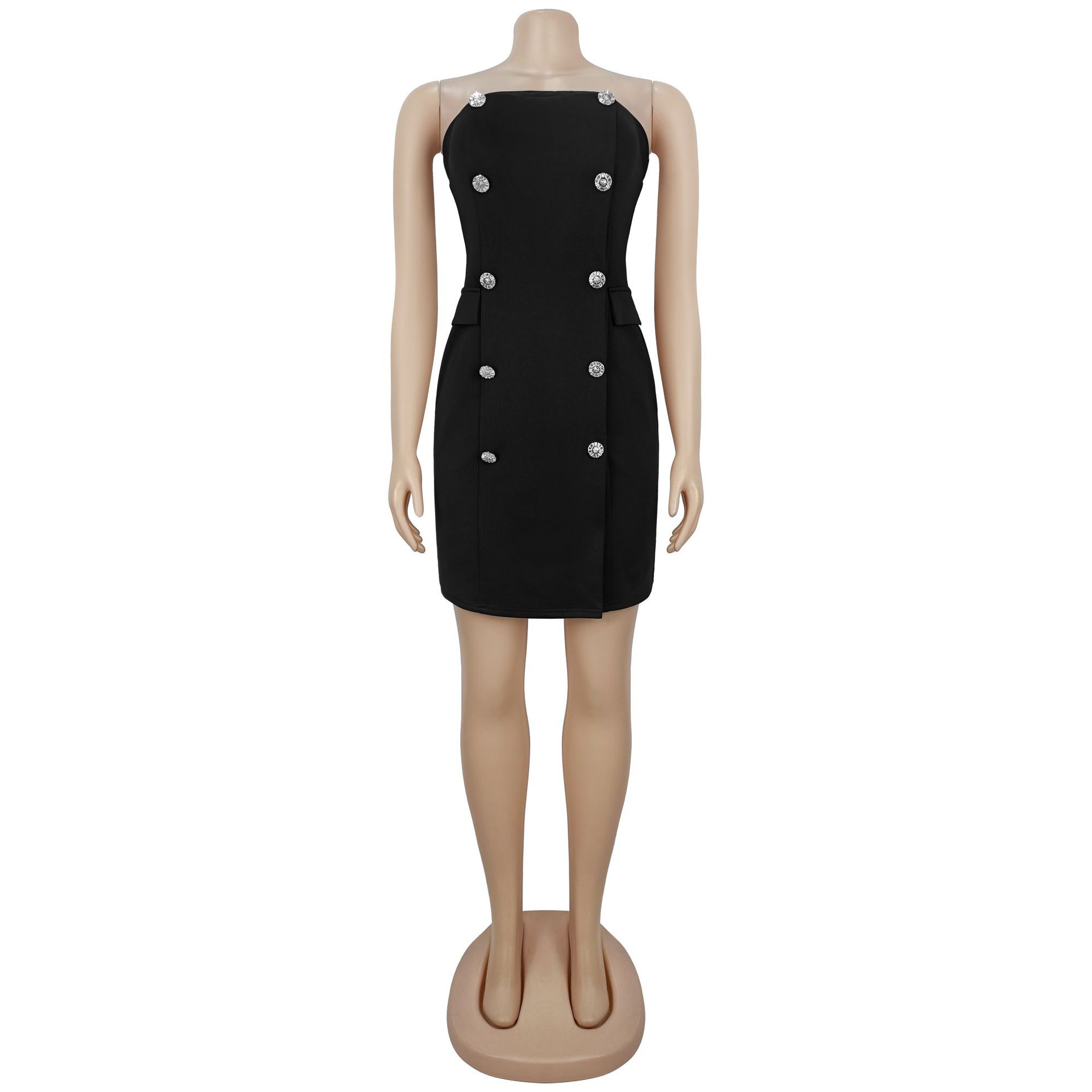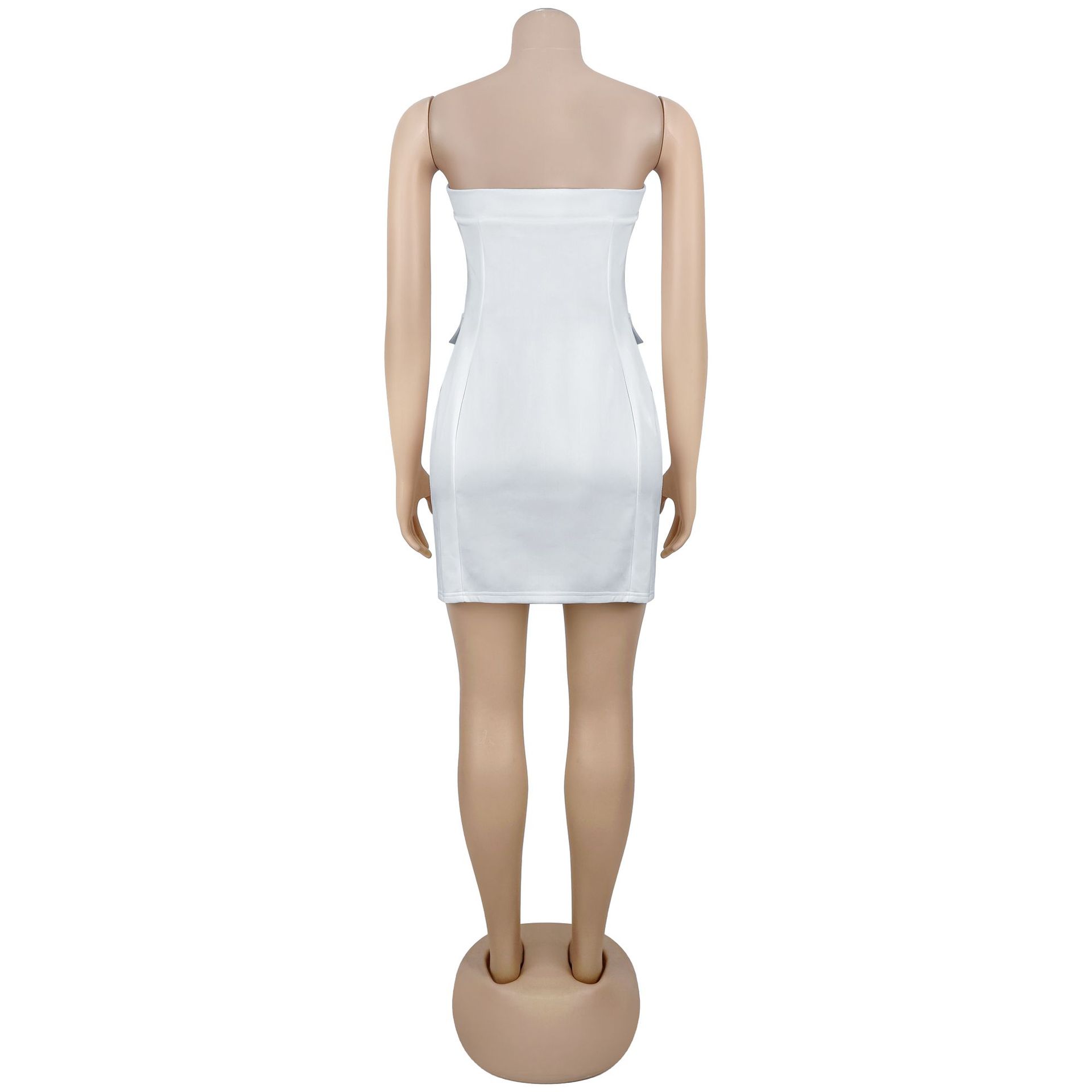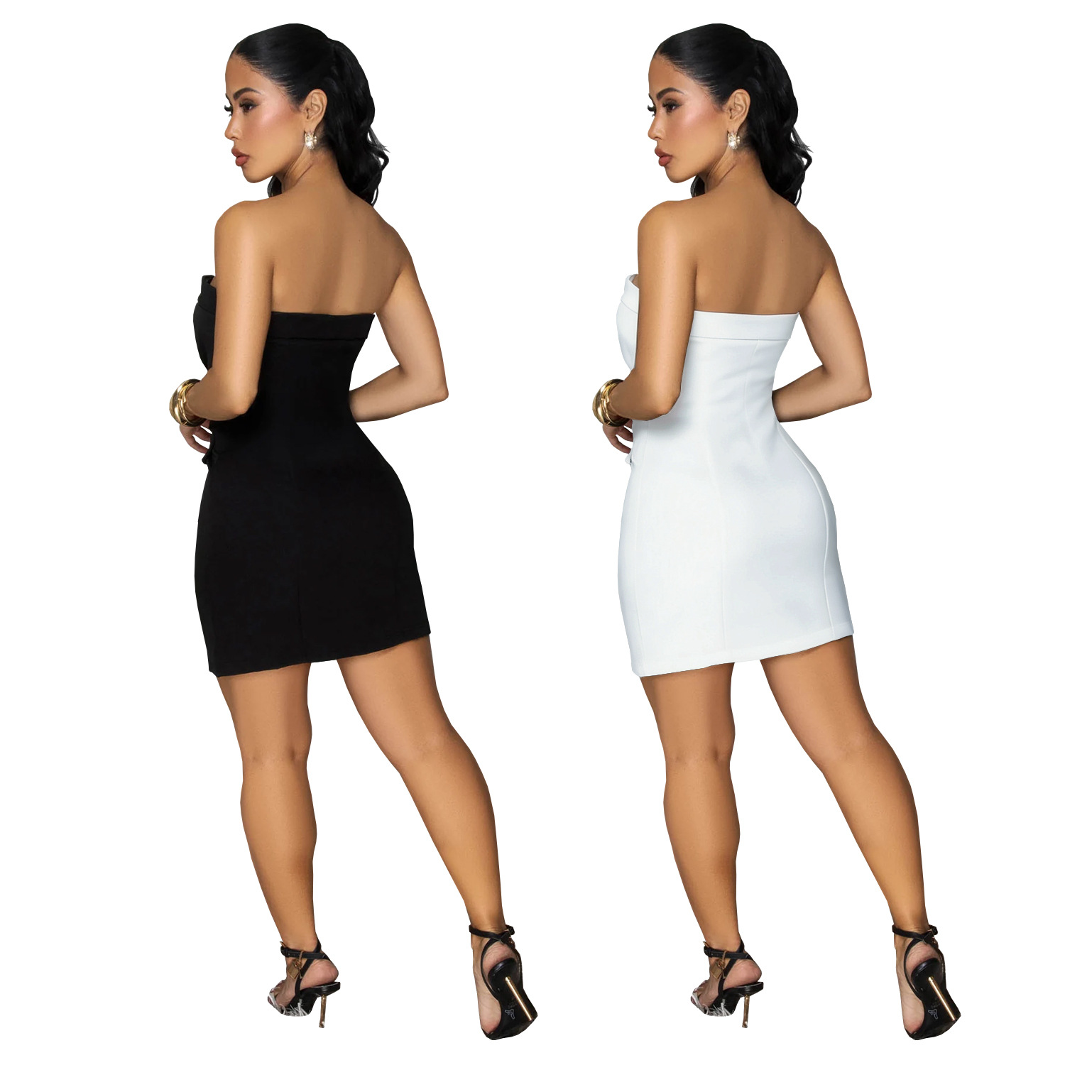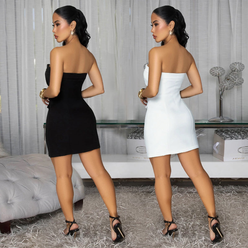 Redefine your evening silhouette with our stunning Strapless Backless Double-Breasted Mini Dress, a piece that perfectly captures modern sophistication for the confident woman. This dress blends the structured authority of a tuxedo with the daring allure of a backless cut, making it the definitive choice for high-fashion events or upscale commuting.