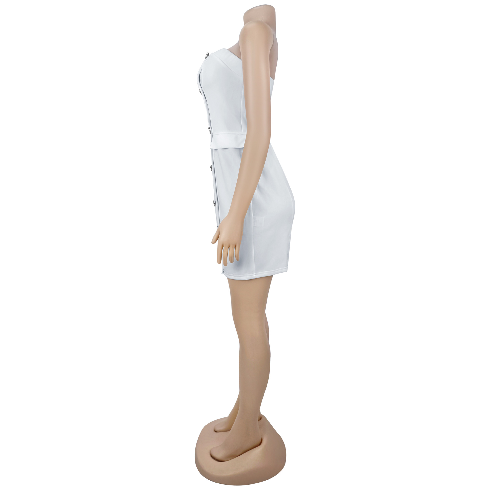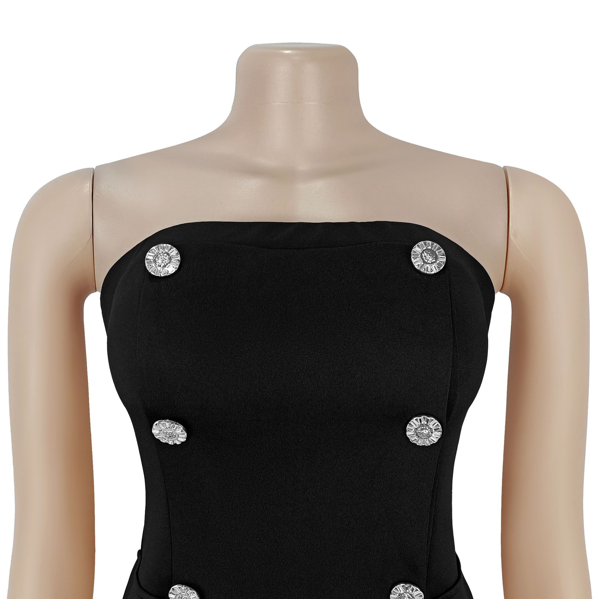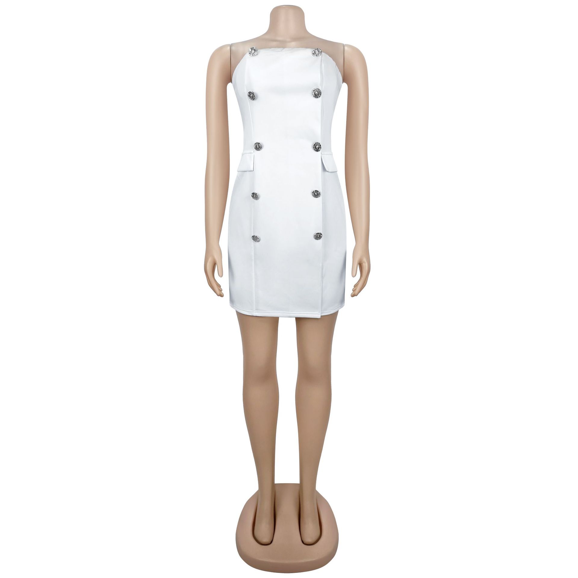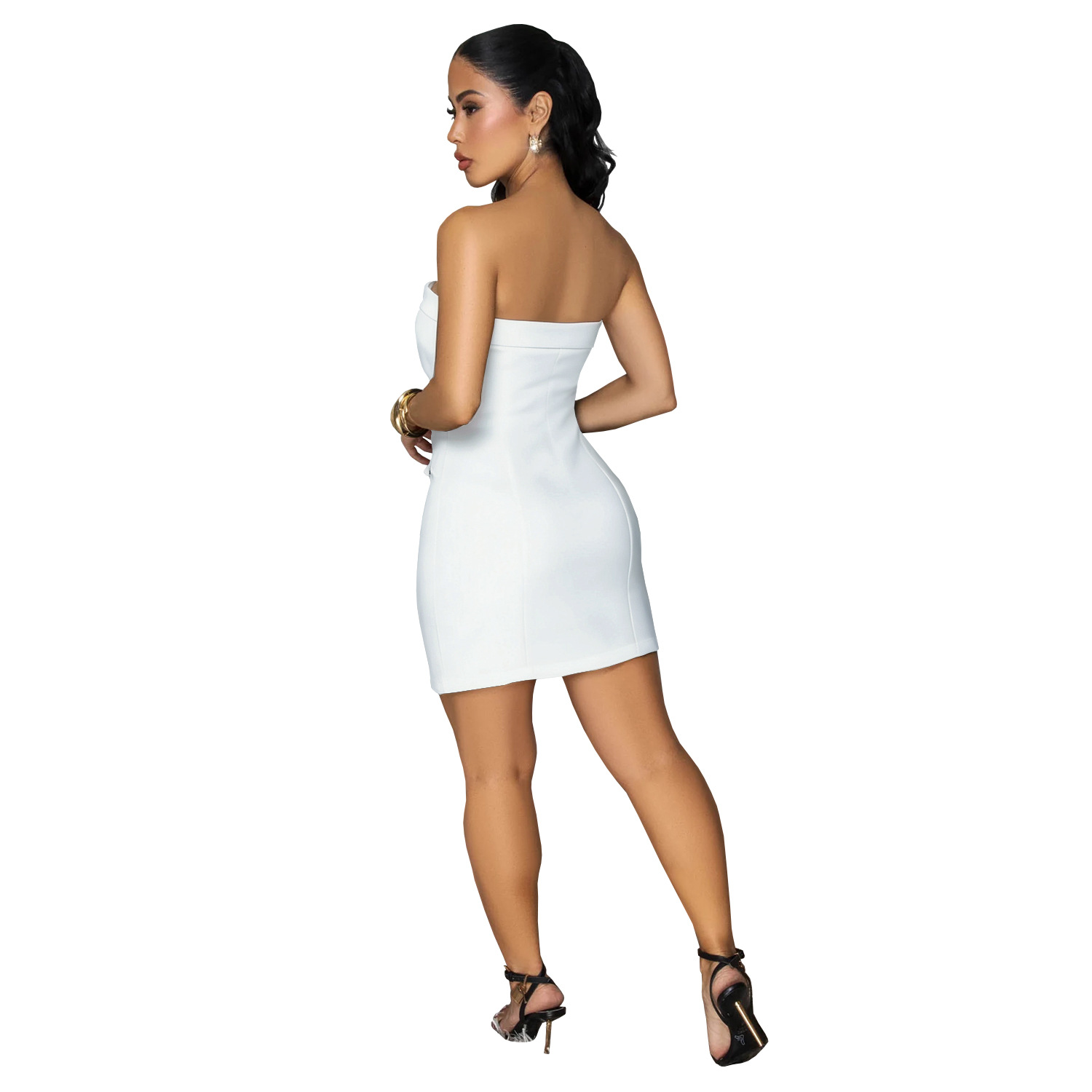 Redefine your evening silhouette with our stunning Strapless Backless Double-Breasted Mini Dress, a piece that perfectly captures modern sophistication for the confident woman. This dress blends the structured authority of a tuxedo with the daring allure of a backless cut, making it the definitive choice for high-fashion events or upscale commuting.