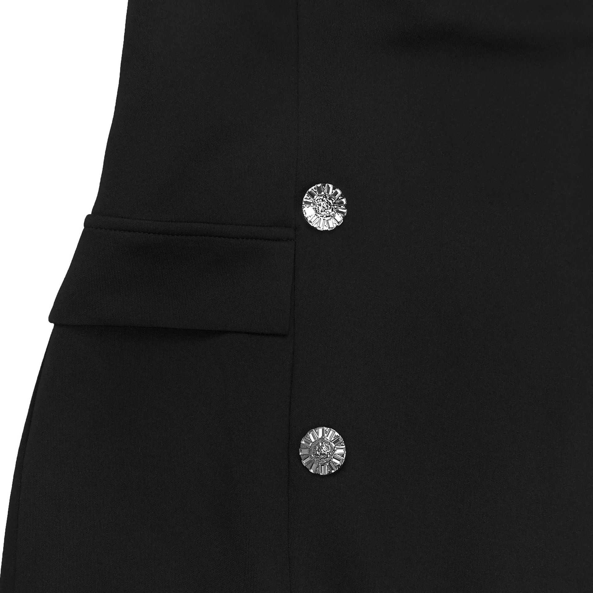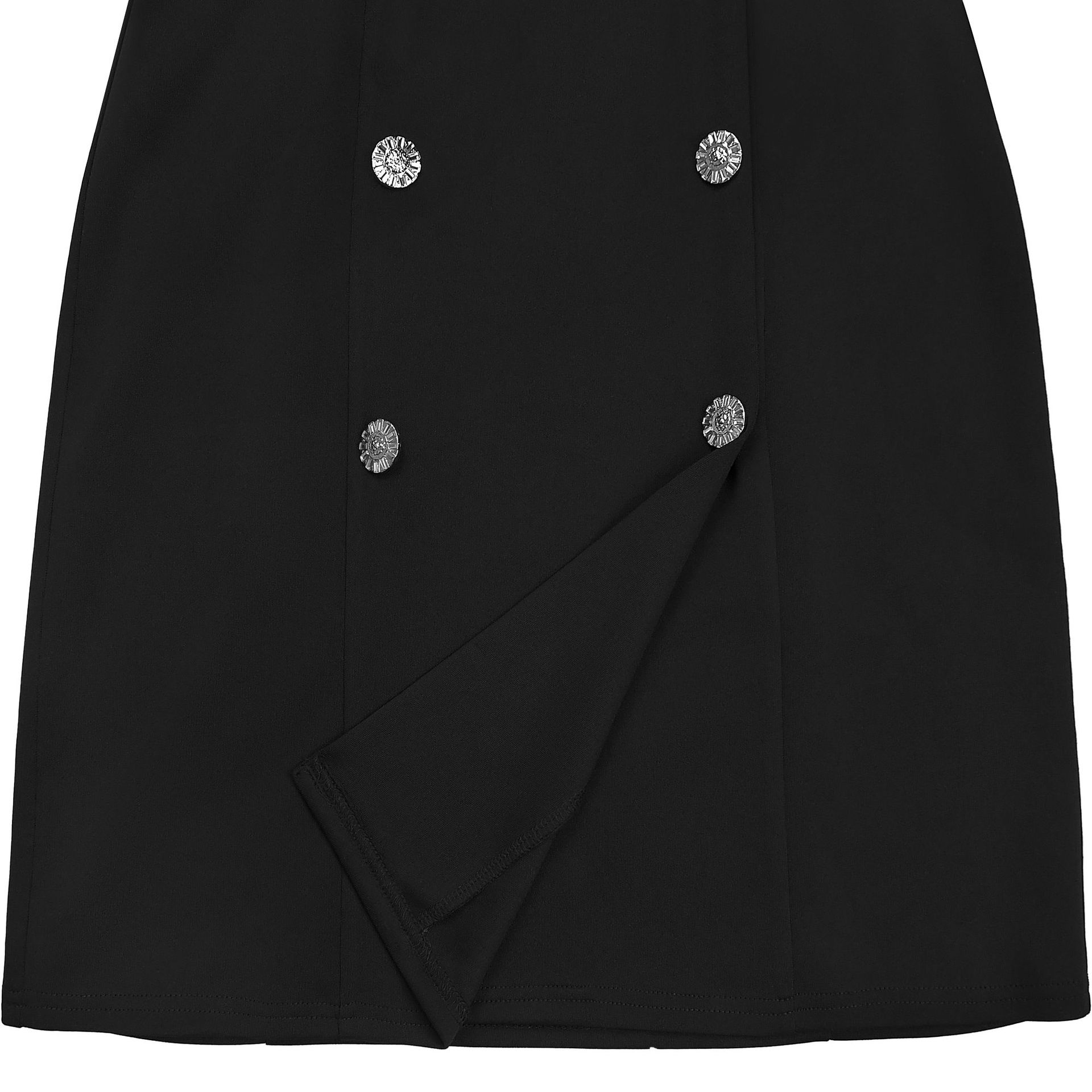 To lean into the "temperament commuting" aesthetic, layer this mini over a crisp, sheer organza blouse for a sophisticated daytime look that transitions seamlessly to dinner. For a pure high-fashion evening vibe, wear it solo to showcase the backless detail and the sharp A-line silhouette. The double-breasted buttons provide a focal point, so keep your lines clean and purposeful.