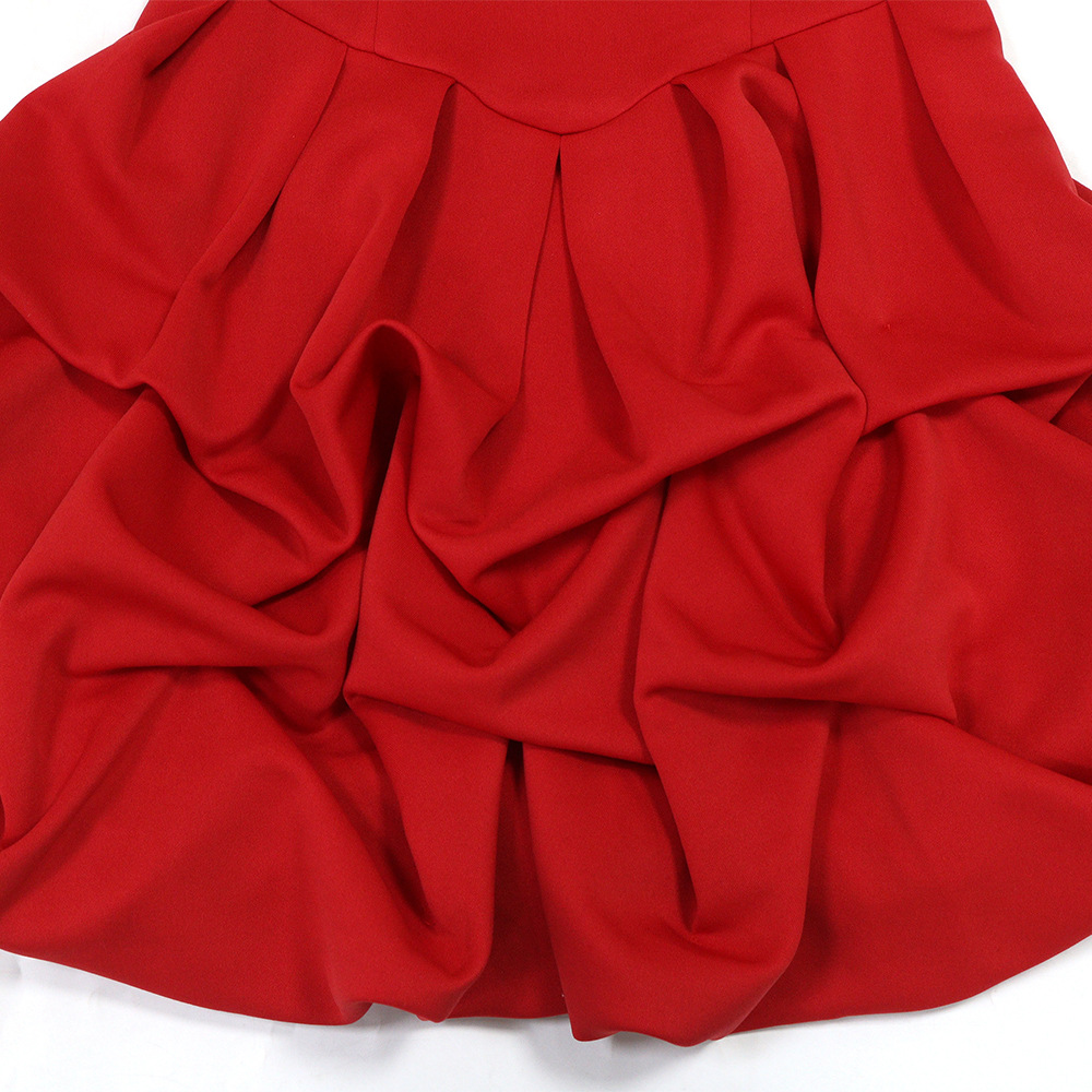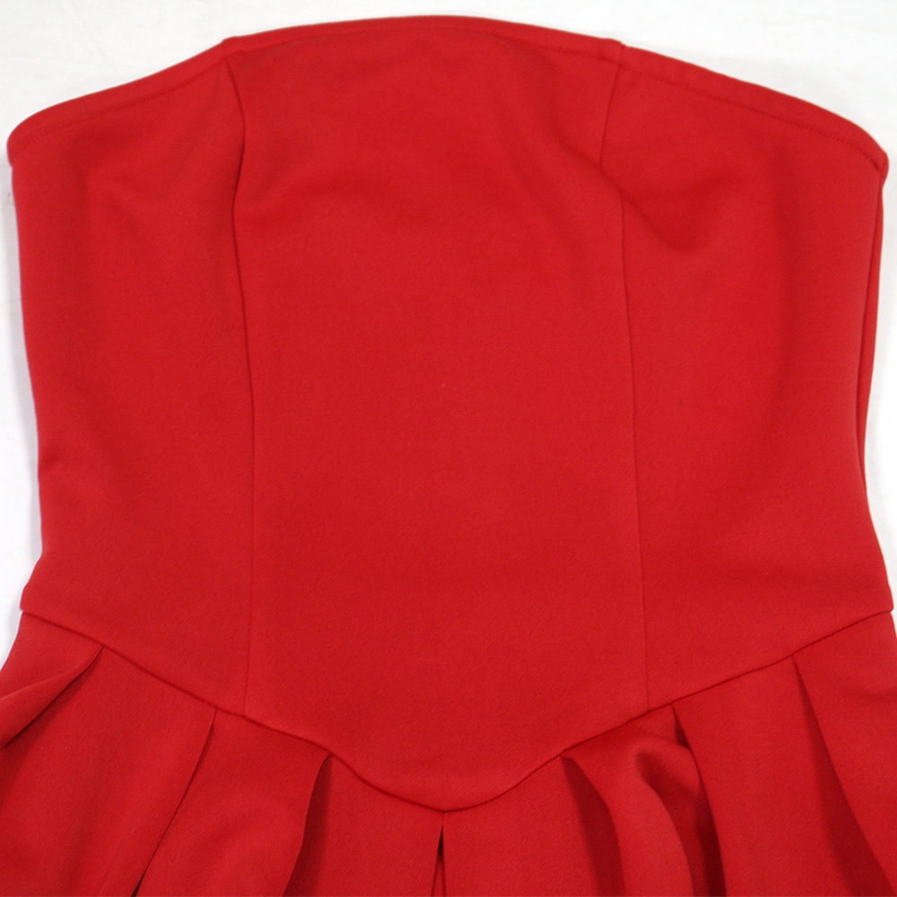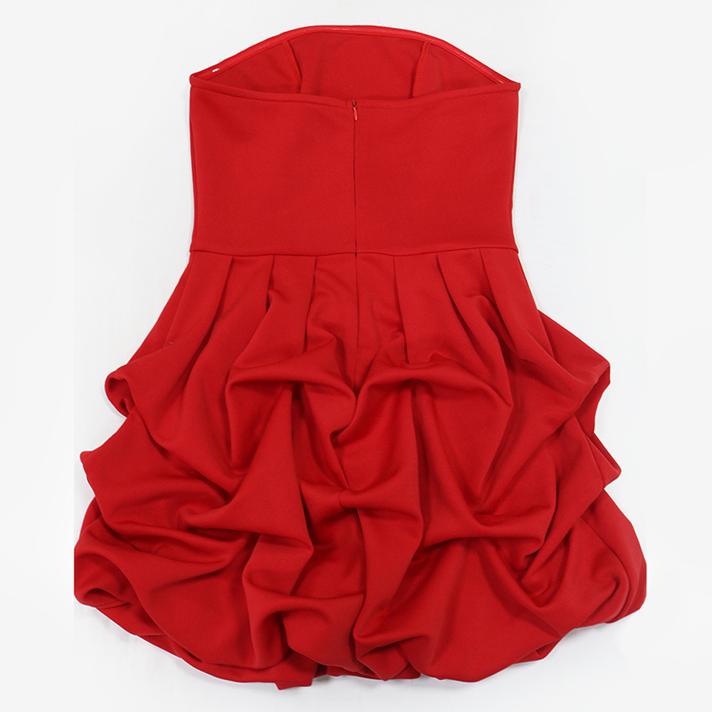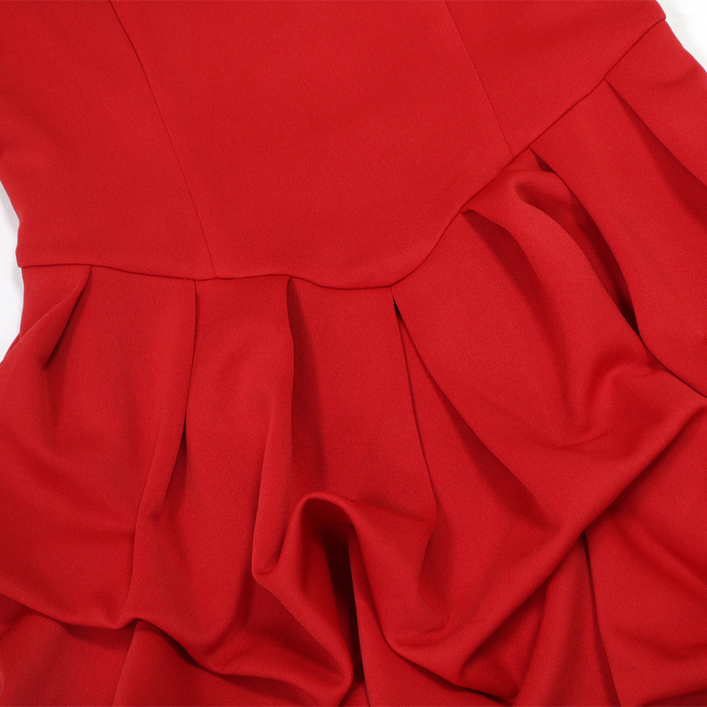 Make a statement in our sophisticated strapless, sleeveless mini dress. Crafted from comfortable polyester with a unique one-shoulder collar and a striking large flower hem, this pullover dress in a solid red color is perfect for the modern office lady