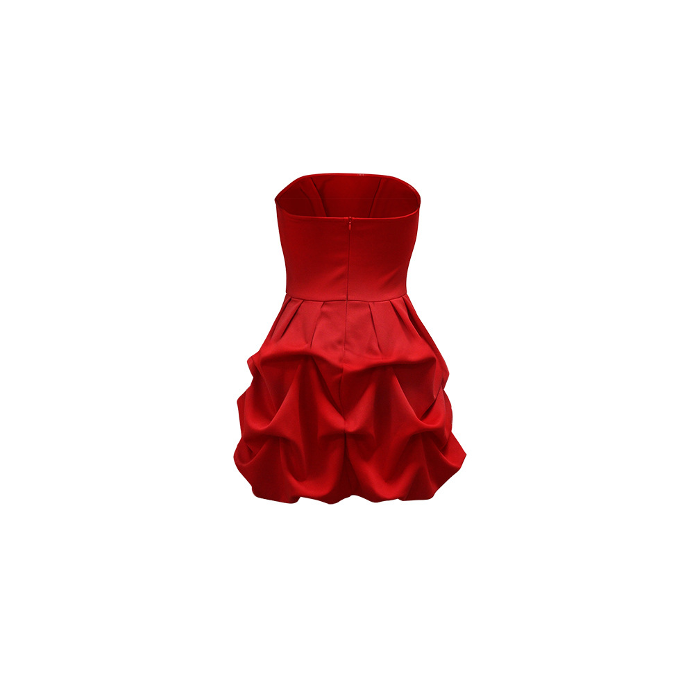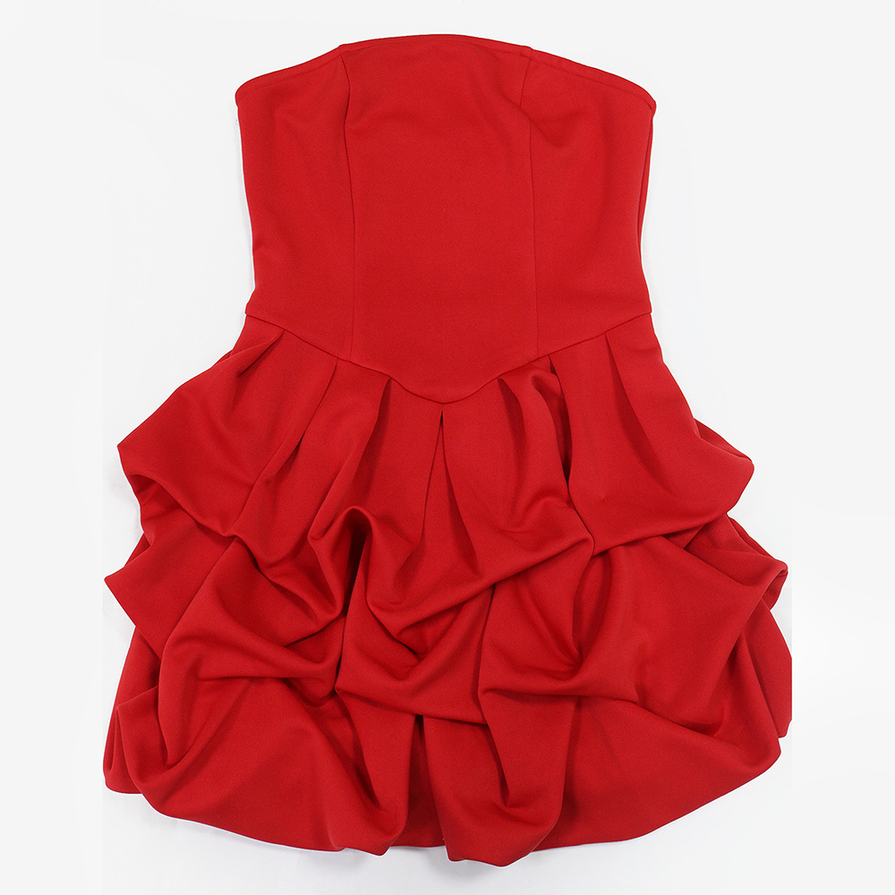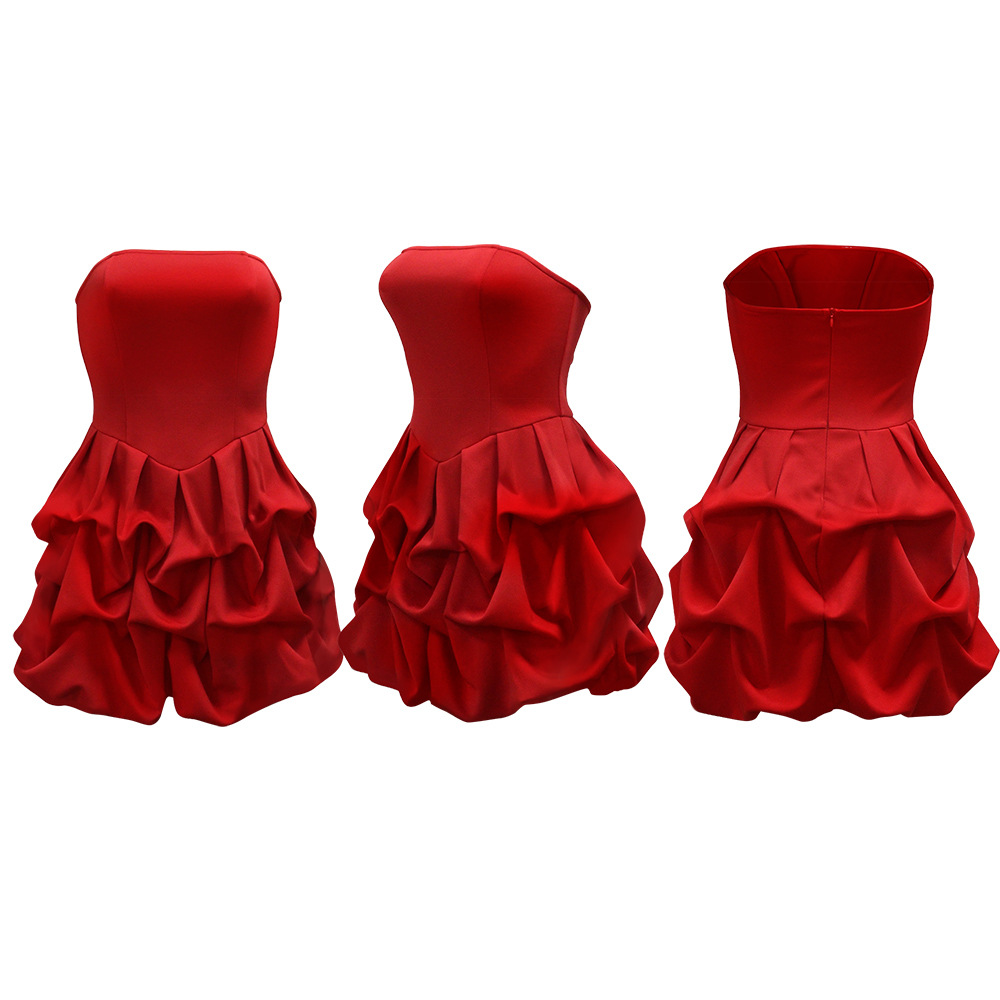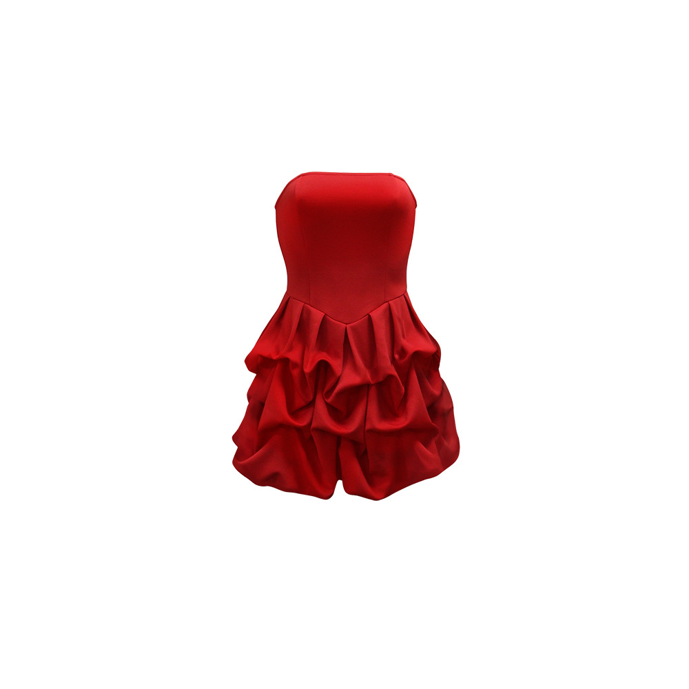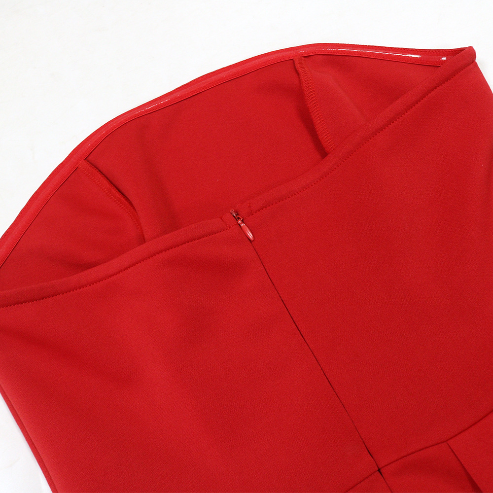Make a statement in our sophisticated strapless, sleeveless mini dress. Crafted from comfortable polyester with a unique one-shoulder collar and a striking large flower hem, this pullover dress in a solid red color is perfect for the modern office lady