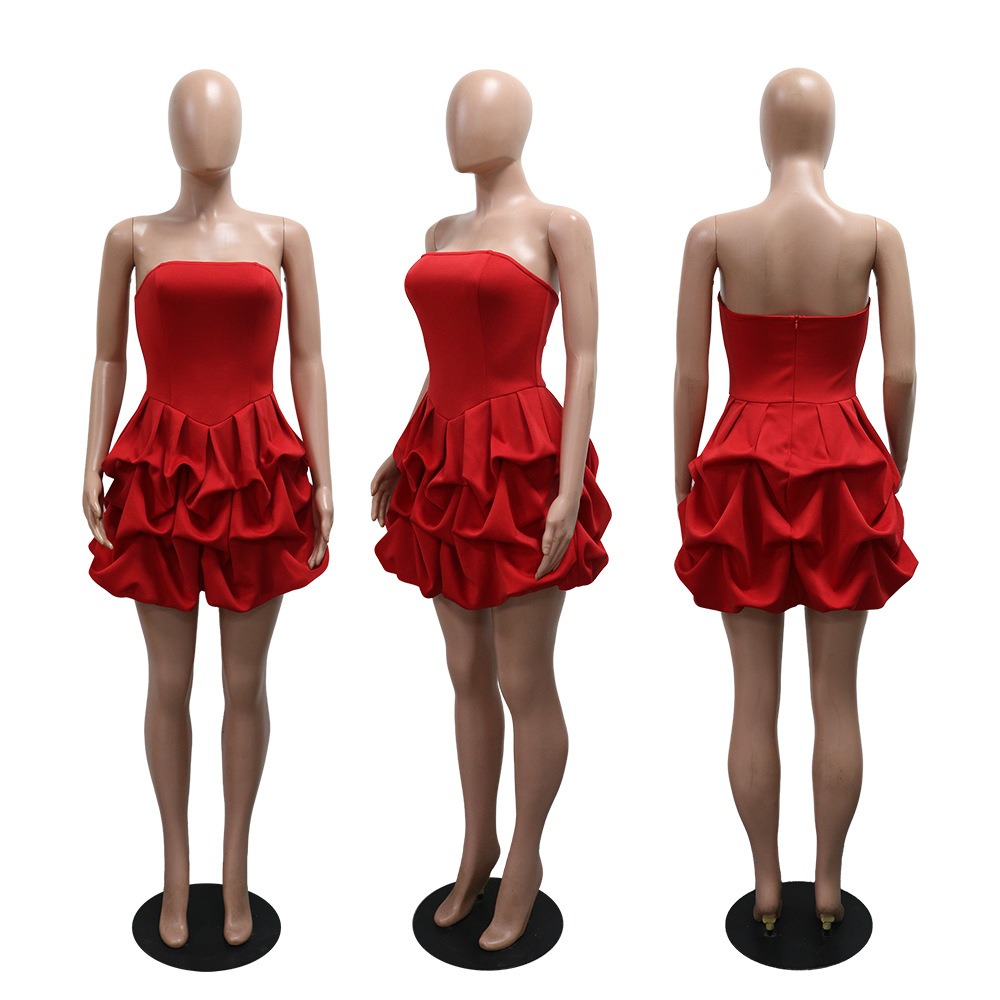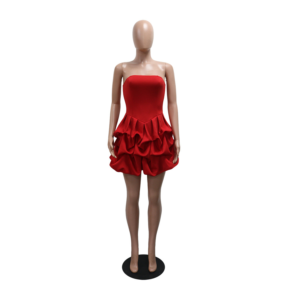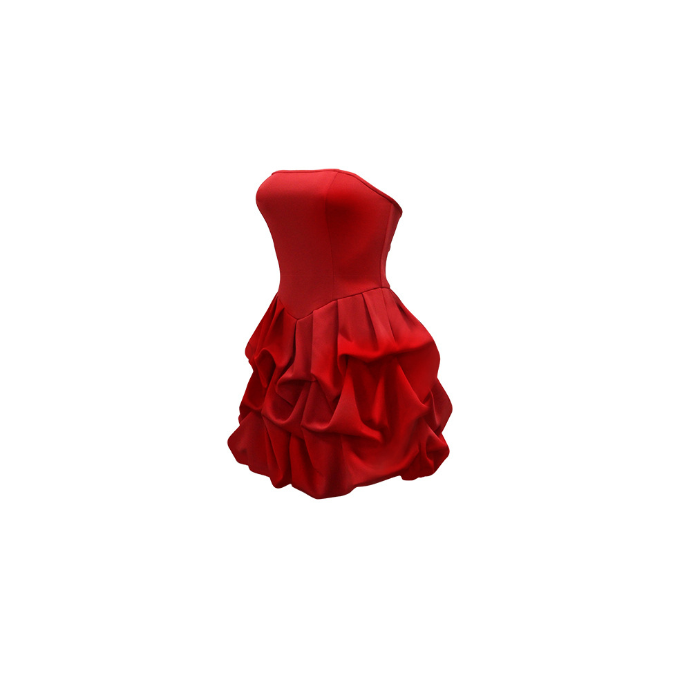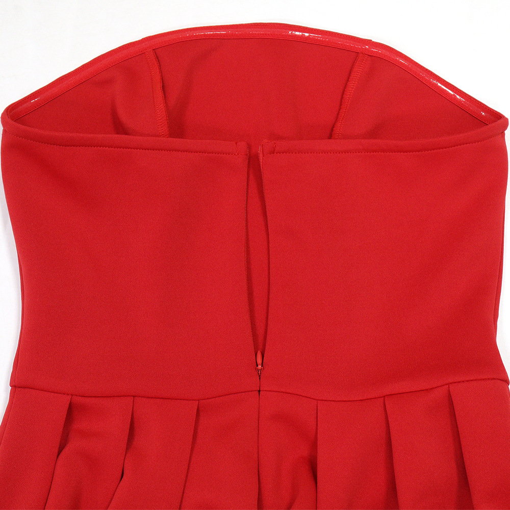 Make a statement in our sophisticated strapless, sleeveless mini dress. Crafted from comfortable polyester with a unique one-shoulder collar and a striking large flower hem, this pullover dress in a solid red color is perfect for the modern office lady