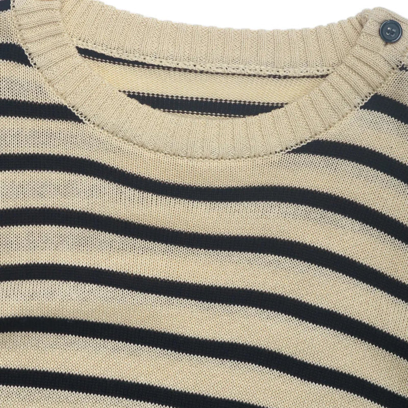 Elevate your wardrobe with our meticulously crafted Striped Round Neck Long Sleeve Knit Top. This versatile piece features a timeless striped pattern on premium knit fabric that offers both comfort and refined style. The classic round neckline provides a flattering silhouette, while the long sleeves ensure warmth without sacrificing elegance. Perfect for transitional seasons, this sophisticated top pairs effortlessly with tailored trousers for professional settings or with your favorite denim for casual outings. The subtle yet distinctive design makes it an indispensable addition to any curated collection.