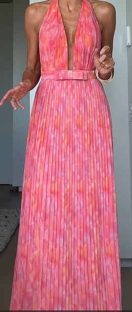 Make a bold statement with our daring V-lace backless midi dress. This chic and sexy pink dress features a high waist, sleeveless design, and a striking V-lace back for effortless style. Perfect for a night out or any special occasion.