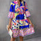 V-Neck Printed Flared Sleeve Pleated Mini Dresses