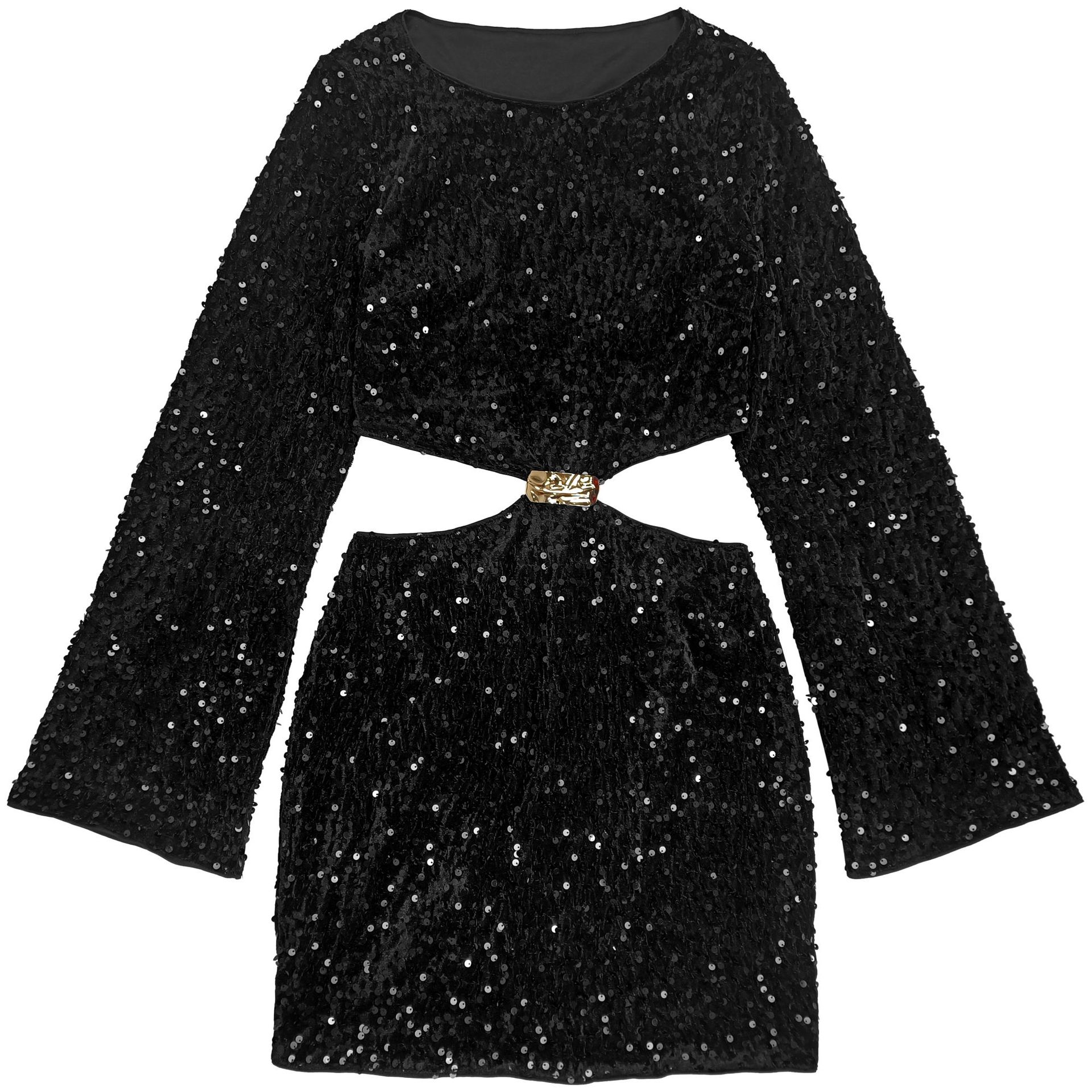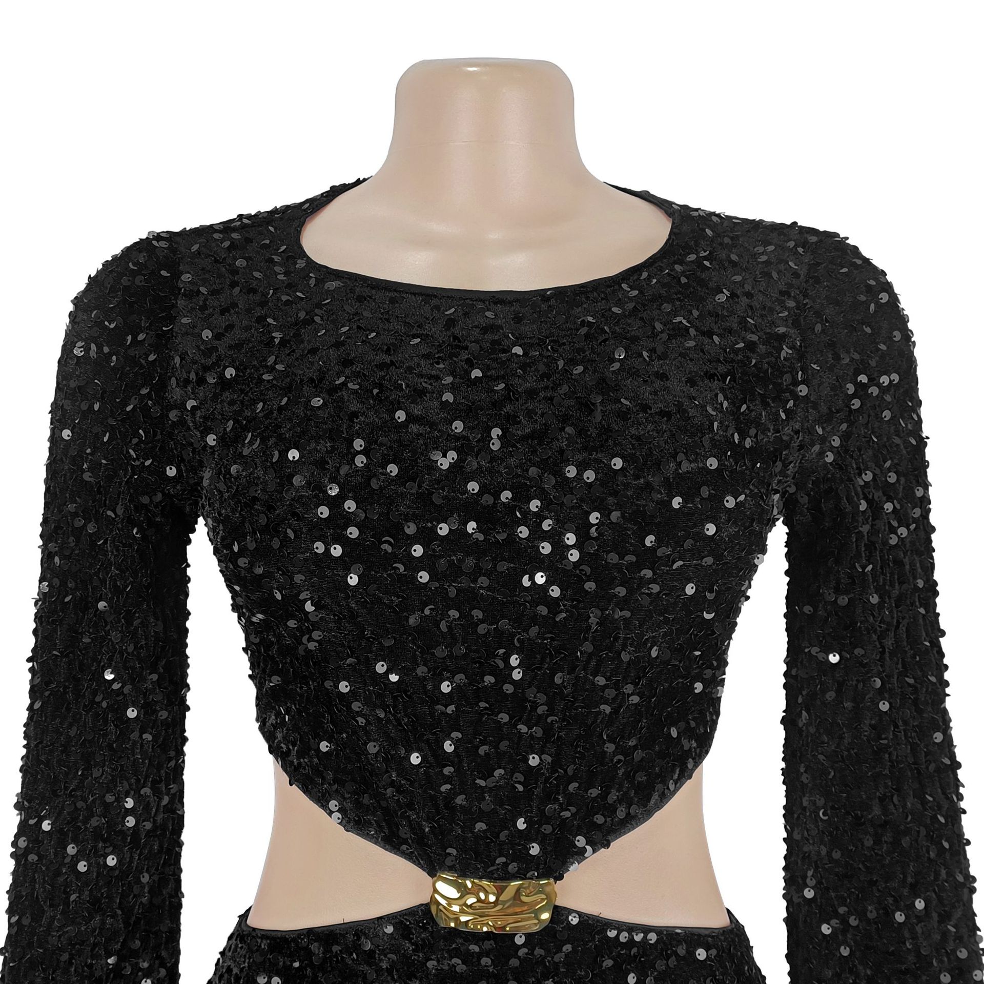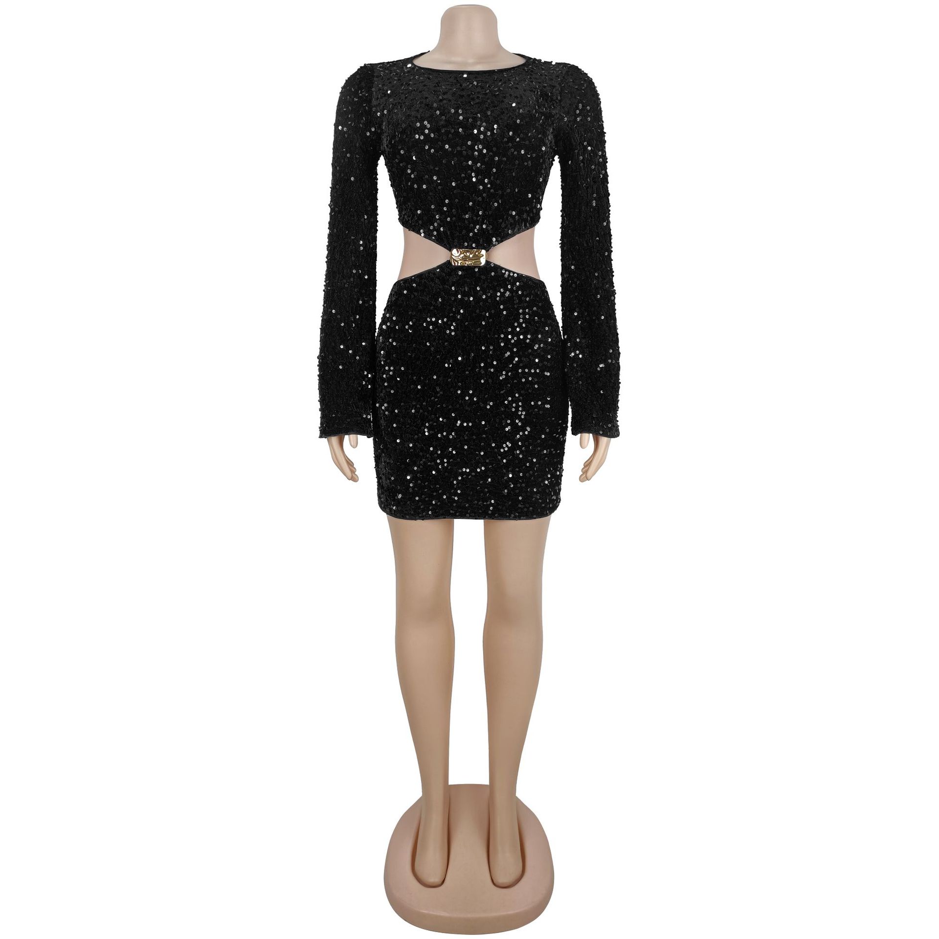 The "Elegant Commute" style of this dress makes it incredibly versatile for high-end events. Because it features a bodycon fit and midriff exposure, balance the silhouette with a tailored oversized blazer draped over your shoulders for a powerful, professional-to-party transition. To emphasize the beaded waist-accent, keep your outerwear open.